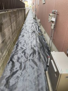 弊社の管理物件でも毎年、除草作業をしていましたが毎回費用がかかってしまうのでこの度防草シートを施工しました。